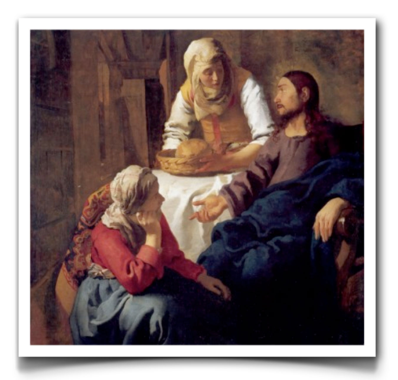 (38) Now as they went on their way, he entered a certain village, where a woman named Martha welcomed him into her home. (39) She had a sister named Mary, who sat at the Lord’s feet and listened to what he was saying. (40) But Martha was distracted by her many tasks; so she came to him and asked, ‘Lord, do you not care that my sister has left me to do all the work by myself? Tell her then to help me.’ (41) But the Lord answered her, ‘Martha, Martha, you are worried and distracted by many things; (42) there is need of only one thing. Mary has chosen the better part, which will not be taken away from her.’
